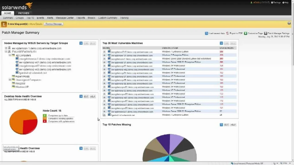SolarWinds offers automation capabilities for patch discovery, scheduling, and reporting. It integrates with WSUS and SCCM, providing additional control over update processes in mixed environments.