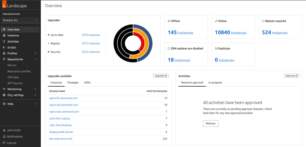 Why it’s among the best: For organizations heavily invested in Ubuntu infrastructure, Landscape is one of the most efficient linux patch management tools. It integrates seamlessly with Canonical’s ecosystem and offers enterprise-grade automation and visibility.