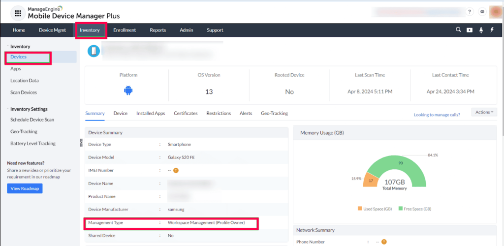 ManageEngine Mobile Device Manager Plus is an all-encompassing and one of the best MDM software that helps manage and secure different types of devices across platforms. It offers a unified console for various device management needs. Some of its key security features are real-time device tracking, device encryption enforcement, app and data containerization, passcode and biometric policies, and remote wiping and locking the device.